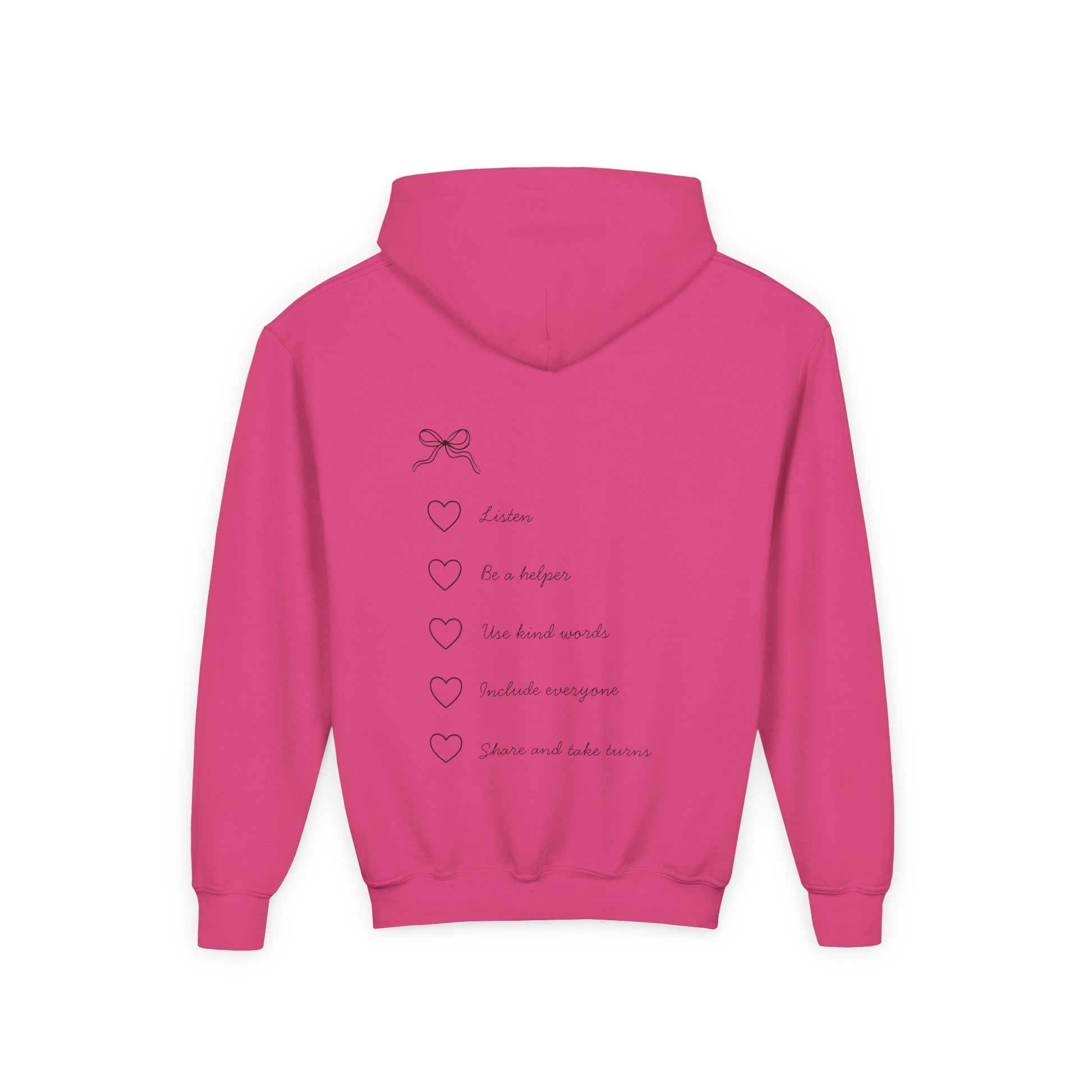 Back: The Rules of Kindness! The reverse side acts as a constant, gentle reminder of key social skills, listing essential behaviors next to adorable heart checkboxes: